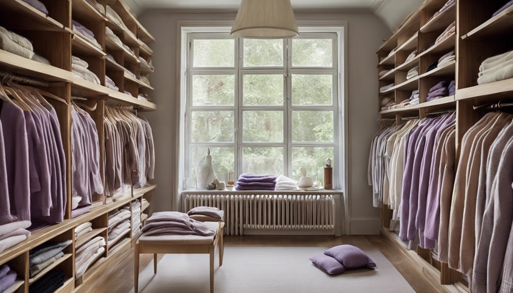 Aby pozbyć się wilgoci z garderoby, zacznij od zidentyfikowania jej źródła—wysoka wilgotność, wycieki lub ciasne pakowanie mogą się do tego przyczyniać. Zwiększ wentylację poprzez lekko otwieranie drzwi i reorganizację ubrań, aby umożliwić ruch powietrza. Użyj pochłaniaczy wilgoci takich jak woreczki z żelem krzemionkowym lub torby z węglem aktywnym, aby wchłonąć nadmiar wilgoci. Dąż do poziomów wilgotności między 30% a 50% dla świeżości. Regularnie sprzątaj i organizuj swoją garderobę, aby zapobiegać wzrostowi pleśni i upewnij się, że twoje ubrania są suche przed ich przechowywaniem. Jeśli chcesz odkryć więcej wskazówek i metod, aby utrzymać garderobę wolną od wilgoci, jest wiele do odkrycia.